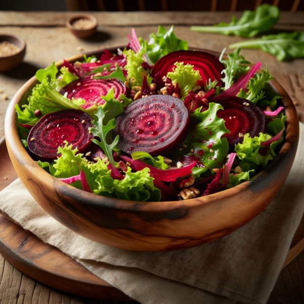 Для заправки винегрета используйте растительное масло, лимонный сок или яблочный уксус, добавьте соль и перец по вкусу.